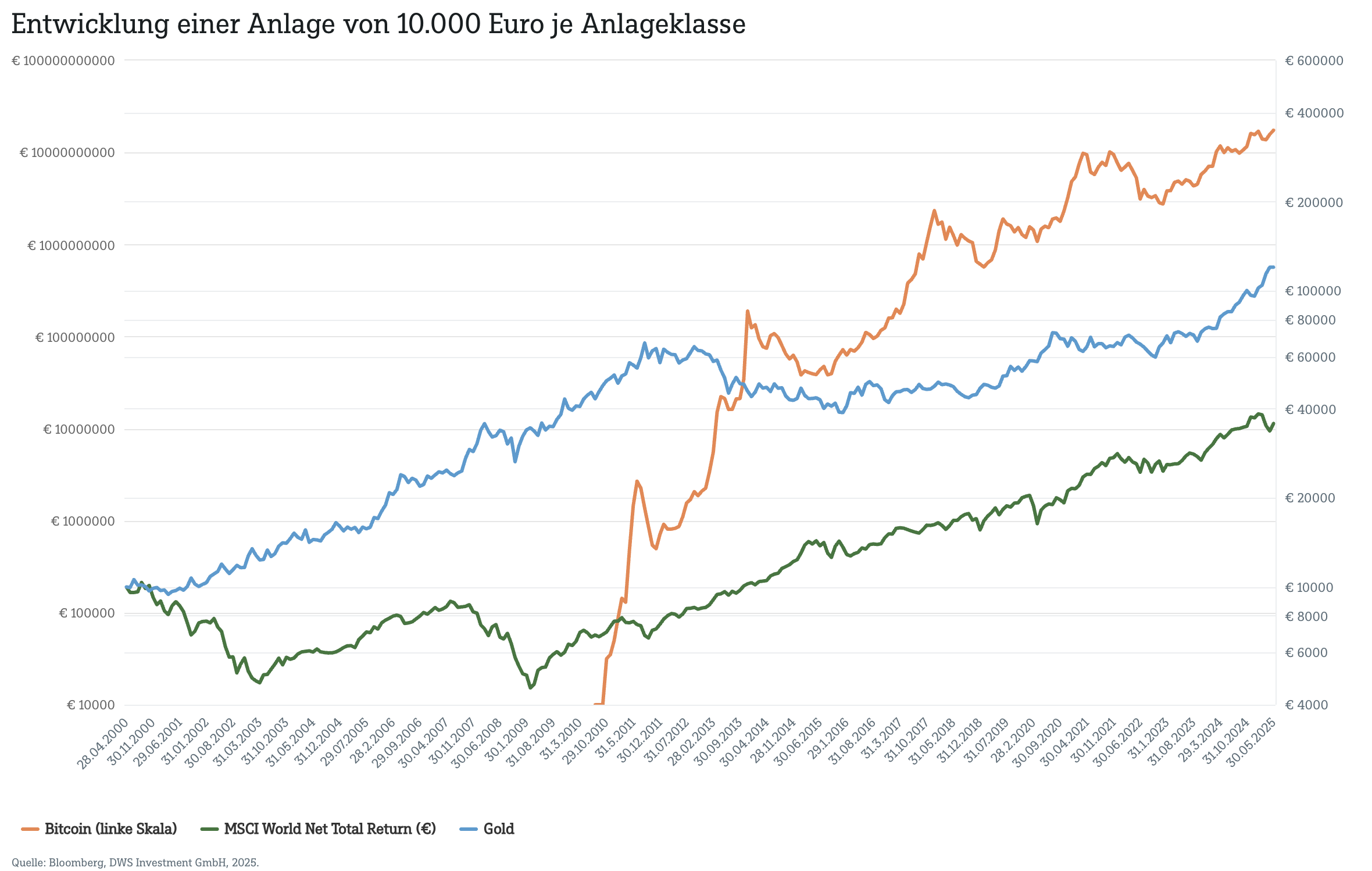 Stell dir vor, du hättest vor 25 Jahren 10.000 Euro investiert – mit welcher Anlage hättest du als erstes die Million geknackt? Bitcoin, der digitale Shootingstar, hätte aus 10.000 Euro theoretisch Millionen gemacht – allerdings kann man die Kryptowährung erst seit 2010 handeln und der Weg war bisher alles andere als entspannt.